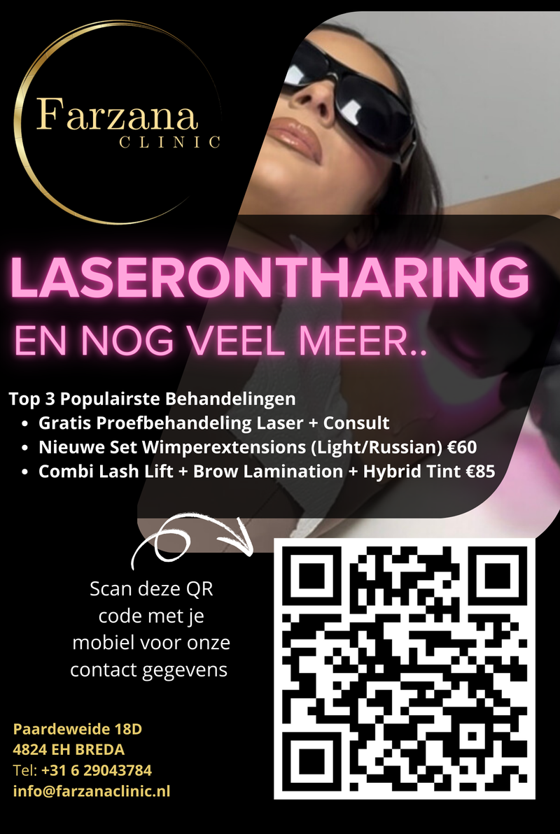 Farzana Clinic is dé plek in Breda voor hoogwaardige schoonheidsbehandelingen. Wij specialiseren ons in pijnloze laserontharing met de geavanceerde Diode ICE Quattrowave Laser, geschikt voor vrijwel alle huid- en haartypes. Daarnaast bieden wij ook professionele wimperextensions, lash lifts, brow lamination met hybrid tint en effectieve cryolipolyse behandelingen aan.